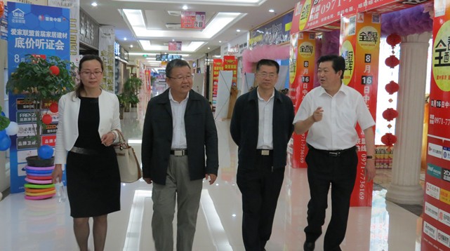 8月9日下午,中國(guó)建筑材料流通協(xié)會(huì)會(huì)長(zhǎng)孟國(guó)強(qiáng)、常務(wù)副會(huì)長(zhǎng)秦占學(xué)、副會(huì)長(zhǎng)張彩虹,及來(lái)自全國(guó)各地各大建材家居市場(chǎng)的中高層管理人員蒞臨家美家居參觀指導(dǎo)。協(xié)會(huì)領(lǐng)導(dǎo)及培訓(xùn)班人員在家美家居多功能廳召開交流會(huì),會(huì)上物產(chǎn)集團(tuán)黨委書記、現(xiàn)代物流公司董事長(zhǎng)白家林致辭,歡迎協(xié)會(huì)領(lǐng)導(dǎo)及全體人員,并為大家介紹了公司及家美家居建材城的情況。孟國(guó)強(qiáng)會(huì)長(zhǎng)講話,充分肯定了青海物產(chǎn)規(guī)劃、建設(shè)、運(yùn)營(yíng)家美家居的理念與成績(jī)。會(huì)后,孟會(huì)長(zhǎng)一行80余人在白書記、現(xiàn)代物流公司總經(jīng)理李朝陽(yáng)、黨支部書記竇子賢的陪同下參觀了家美家居。