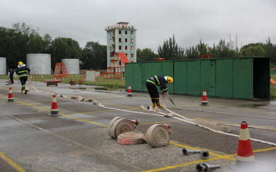 本次比武競賽共有42支隊伍參加,我公司平安消費(fèi)品市場參加了一人兩盤水袋連接操、原地著滅火防護(hù)服百米負(fù)重跑個人技能比賽項目和手提式干粉滅火器滅油槽火操、固定消防設(shè)施撲滅初起火災(zāi)操集體比賽項目。