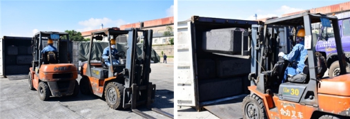 鏡頭五:散貨堆場內(nèi),工藝車隊(duì)"叉車卸運(yùn)集裝箱"技術(shù)比武吸引了大量下班途中的職工駐足觀看。選手們以嫻熟的駕駛技術(shù),將集裝箱內(nèi)堆放的炭塊接連不斷地掏出,并運(yùn)送至指定板車上。大家你追我趕、競賽氣氛異常激烈。