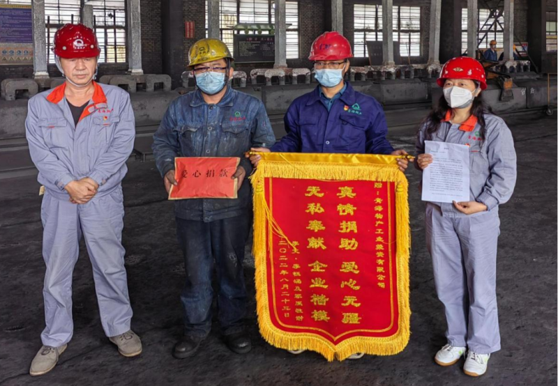 (物產(chǎn)工投公司 訊 任蕊/文攝)“謝謝公司領導和同志們的關心,謝謝、謝謝……”當物產(chǎn)工投公司陽極組裝車間職工李文雙手接過這包充滿了關心和溫暖的愛心捐款時,強忍的淚水早已決堤,疲憊的臉上多了一絲幸福和希望。