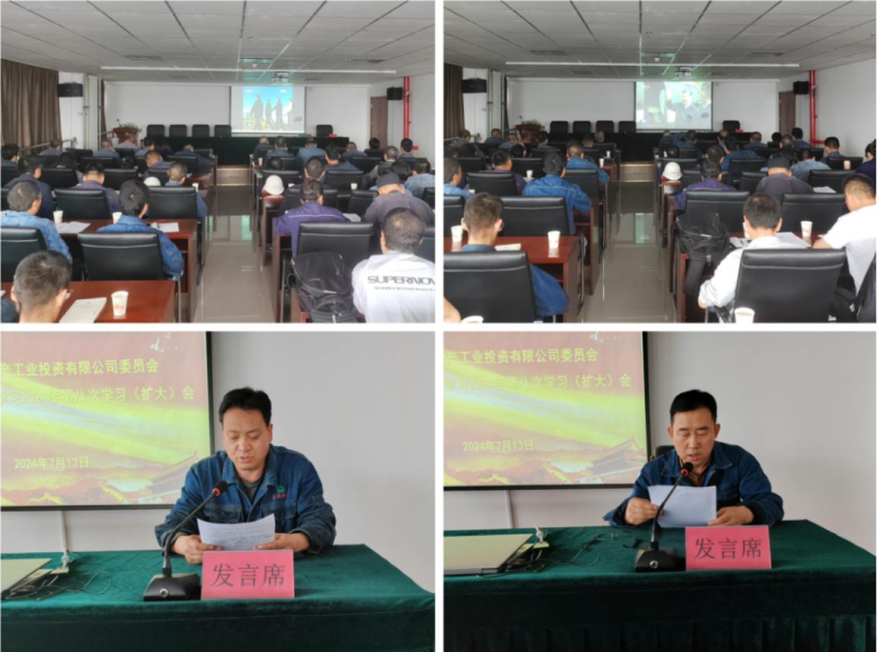 為深入貫徹落實習(xí)近平總書記在青??疾鞎r的重要講話精神,把思想、認(rèn)識和行動統(tǒng)一到習(xí)近平總書記對青海工作的重要指示精神上來,7月13日上午,工投公司黨委在16樓會議室召開理論學(xué)習(xí)中心組學(xué)習(xí)2024年第八次學(xué)習(xí)(擴大)會暨開展“黨紀(jì)學(xué)習(xí)教育”活動推進會。公司黨委書記,董事長、總經(jīng)理王兆明主持會議;公司黨政班子成員、全體黨員、中心組學(xué)習(xí)秘書、預(yù)備黨員、發(fā)展對象、入黨積極分子、各支部信息聯(lián)絡(luò)員、助理以上管理人員60余人參加。