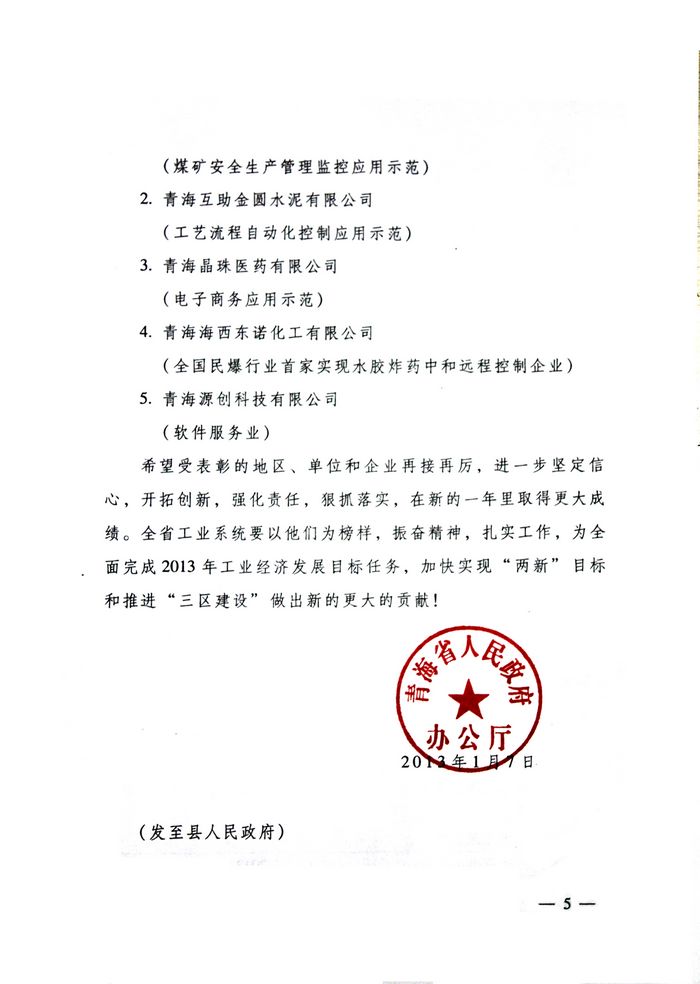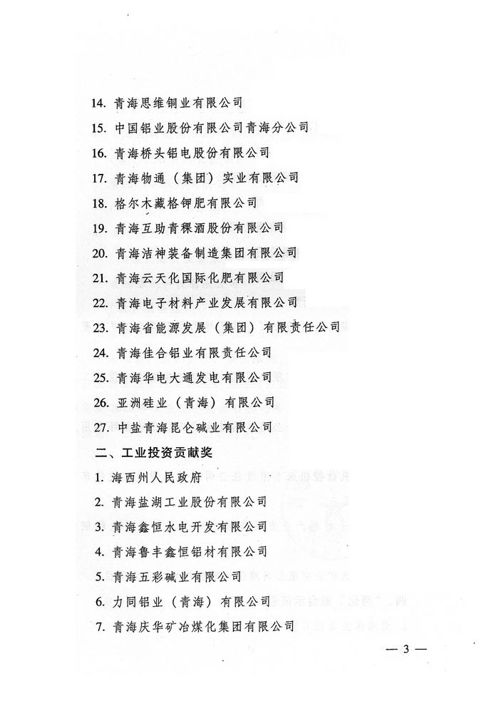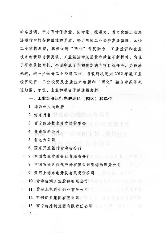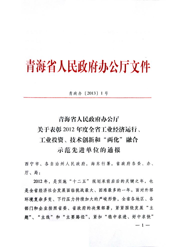 集團(tuán)榮獲2012年度青海省人民政府“工業(yè)投資貢獻(xiàn)獎”
