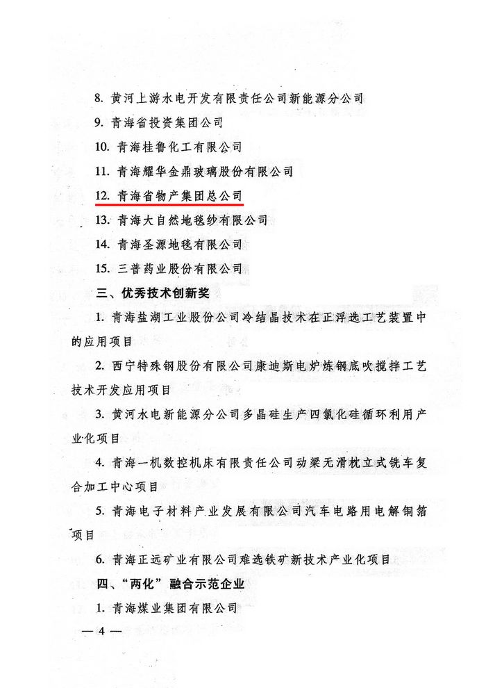 2012年,青海省物產(chǎn)集團(tuán)總公司在省委、省政府及省國資委的大力支持和領(lǐng)導(dǎo)下,集團(tuán)總公司按照全省工業(yè)經(jīng)濟(jì)總體部署和要求,著力推進(jìn)工業(yè)項(xiàng)目建設(shè),榮獲"2012年度工業(yè)投資貢獻(xiàn)獎"。