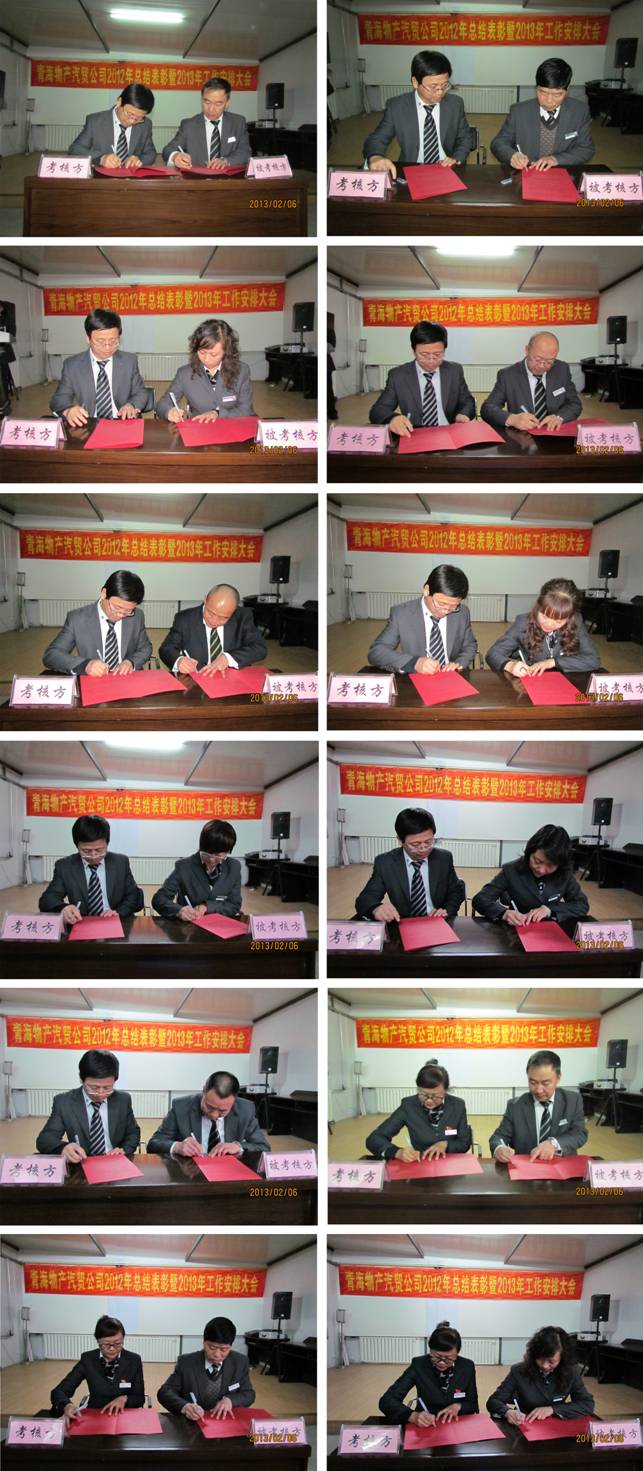 最后,公司總經(jīng)理與各部門簽訂了《2013年度生產(chǎn)經(jīng)營目標責(zé)任書》,支部書記與黨員、非黨員部門負責(zé)人簽訂了《廉政建設(shè)責(zé)任書》。